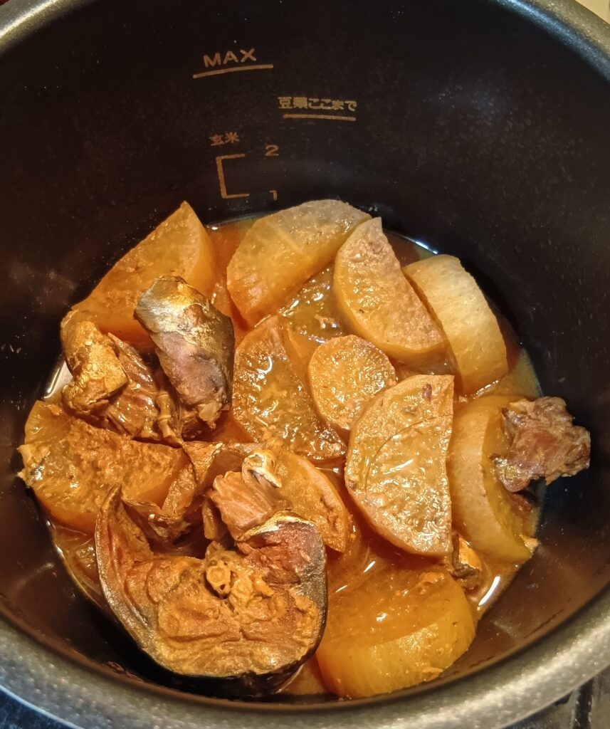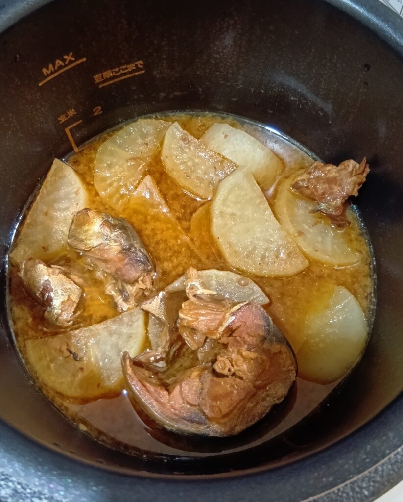 4. 調理後、大根の水分が出て煮汁が増えていたので、そのままだと味が薄め。