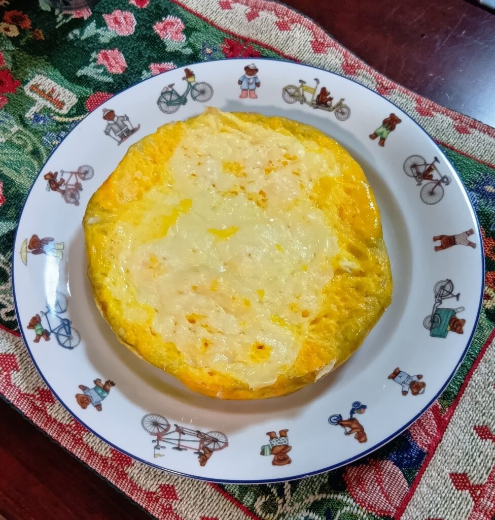 オムレツは、ニトリ電気圧力鍋に卵、オリーブオイルを入れてよくかき混ぜ、上にスライスチーズを乗せて、「蓋開け調理」でほったらかし調理します↓↓